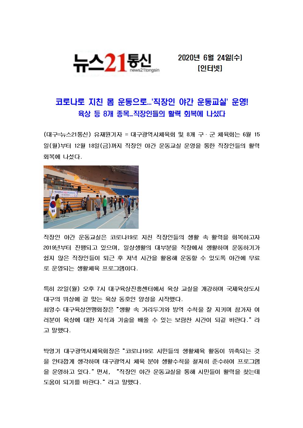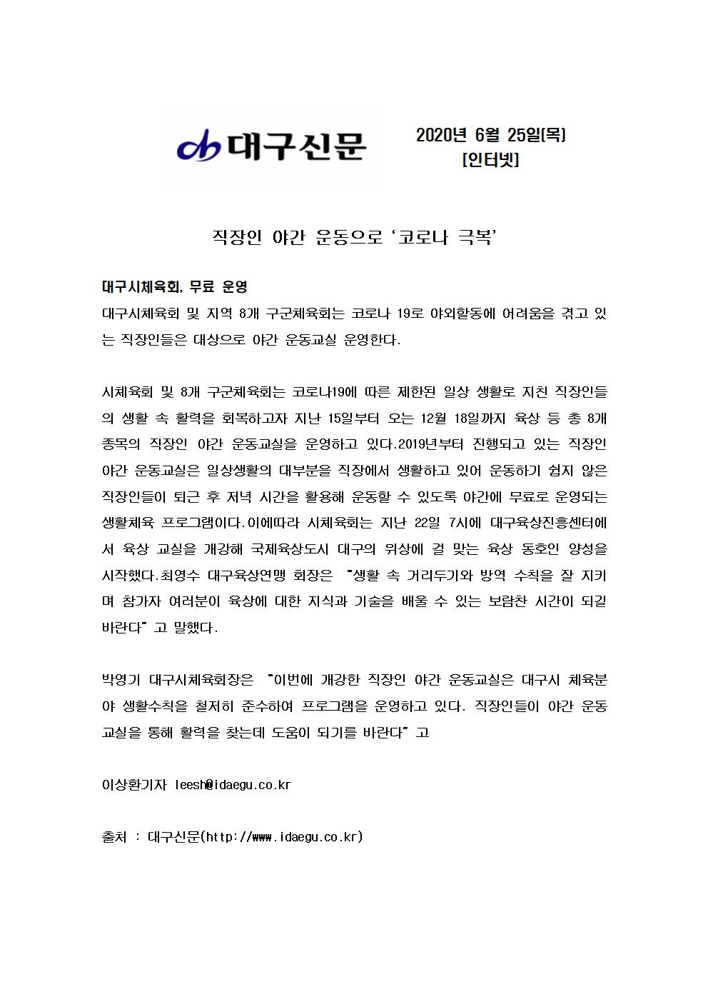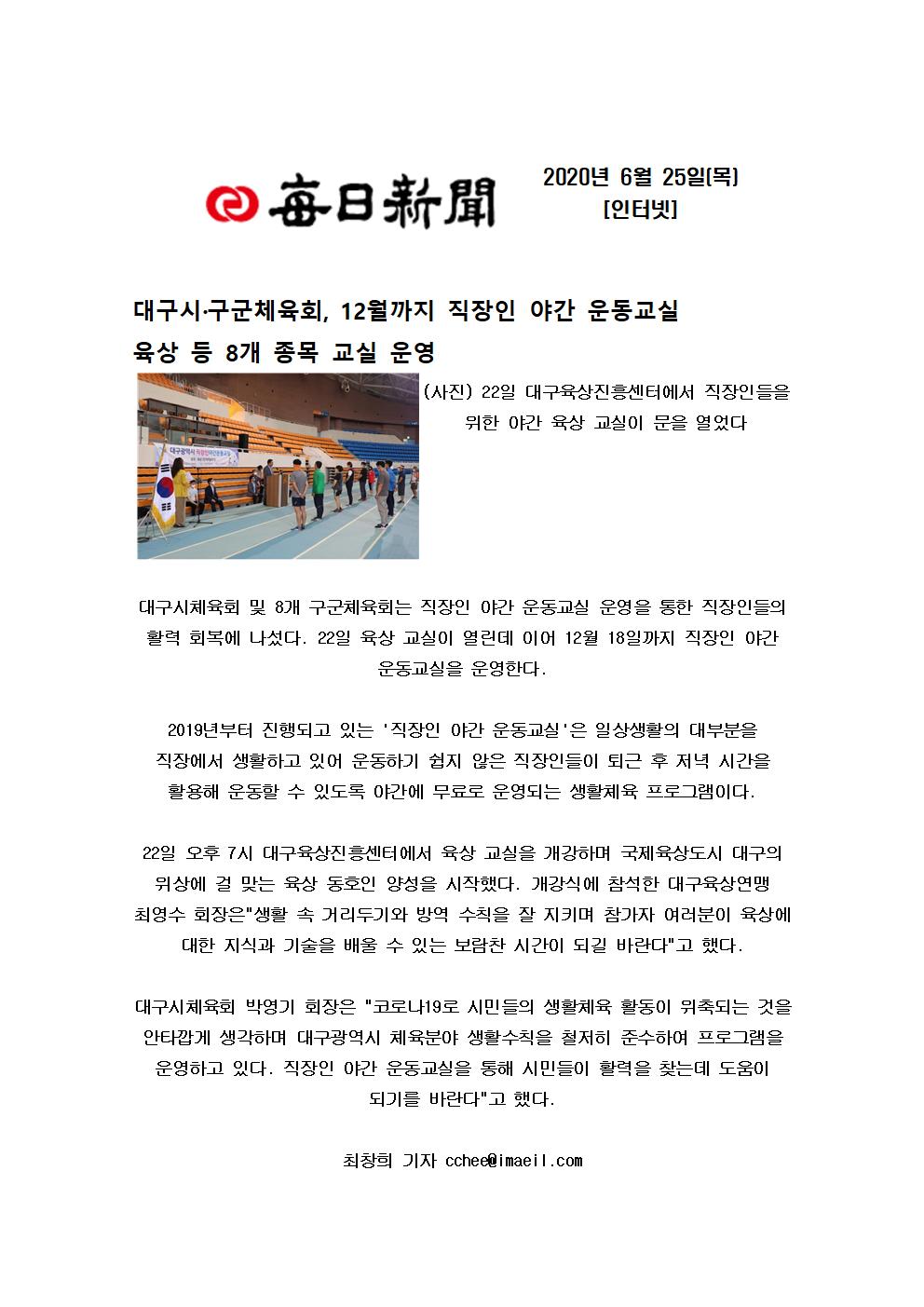 ❍ 교 실 명 : 2020 직장인 야간 운동 육상교실